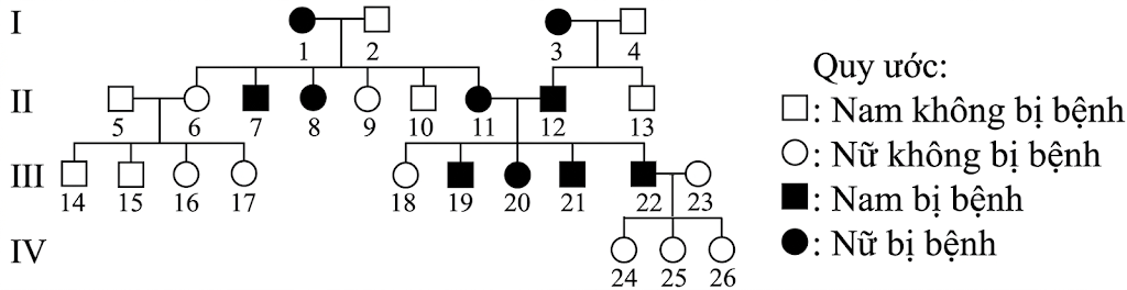 Sơ đồ phả hệ sau mô tả sự di truyền của một bệnh ở người:Biết rằng bệnh này do một