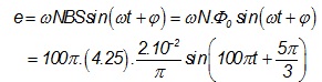 Từ thông qua mỗi vòng dây dẫn của một máy phát điện xoay chiều một pha có biểu thức φ = 2.10-2cos(100πt + 5π/3)/π (Wb). Với stato có 4 cuộn dây nối tiếp, mỗi cuộn có 25 vòng, biểu thức của suất điện động xuất hiện trong máy phát là
