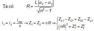Mạch điện xoay chiều R, L, C mắc nối tiếp. Điện áp ở hai đầu đoạn mạch là u = U0cos ωt. Chỉ có ω thay đổi được. Điều chỉnh ω thấy khi giá trị của nó là ω1 hoặc ω2 (ω2 < ω1) thì cường độ dòng điện hiệu dụng đều nhỏ hơn cường độ dòng điện hiệu dụng cực đại n lần (n > 1). Biểu thức tính R là
