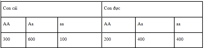 Một gen mã hóa enzim qui định màu sắc lông ở một loài động vật gồm hai alen A, a hoàn toàn độc lập với sự di truyền giới tính, số lượng các cá thể có kiểu gen tương ứng trong một quần thể như sau. Biết các cá thể giao phối ngẫu nhiên.