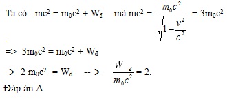 c , với c là tốc độ ánh sáng trong chân không. Tỉ số giữa động năng và năng lượng nghỉ của hạt là:
