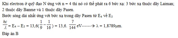 . Nếu nguyên tử hiđrô đang ở trạng thái kích thích ứng với mức năng lượng N thì số bức xạ nó có thể phát ra và bước sóng dài nhất của các bức xạ đó lần lượt là