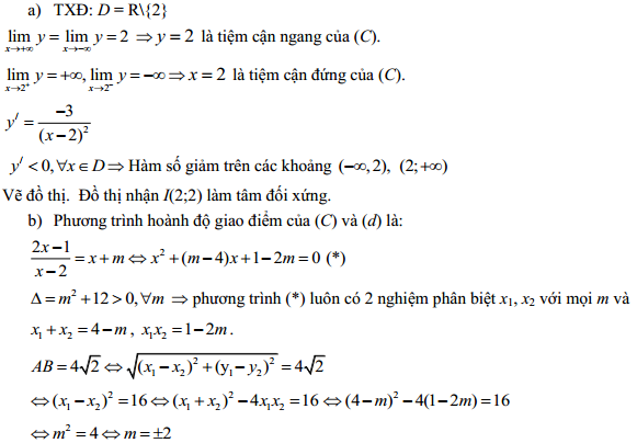 b) Tìm m để đường thẳng (d): y = x + m cắt (C) tại hai điểm phân biệt A, B sao cho AB =