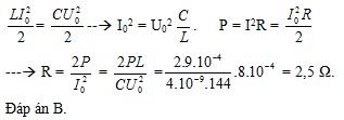 Mạch dao động gồm cuộn dây có độ tự cảm L = 8.10-4 H và tụ điện có điện dung C = 4 nF. Vì cuộn dây có điện trở thuần nên để duy trì dao động của mạch với hiệu điện thế cực đại giữa hai bản tụ là 12V, người ta phải cung cấp cho mạch một công suất P = 0,9 mW. Điện trở của cuộn dây có giá trị