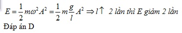 Một con lắc đơn dao động điều hoà trong không khí một ở nơi xác định, có biên độ dao động dài A không đổi. Nếu tăng chiều dài của con lắc đơn đó lên 2 lần, nhưng giữ nguyên biên độ thì năng lượng dao động của con lắc