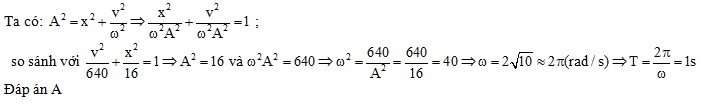, trong đó x tính bằng cm, v tính bằng cm/s. Chu kì dao động của chất điểm là: