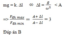 Một con lắc lò xo dao động điều hòa theo phương thẳng đứng với phương trình x=5cos(10t) cm (t tính bằng s). Lấy gia tốc trọng trường g=10m/s2. Tỉ số độ lớn cực đại và cực tiểu của lực đàn hồi của là xo là