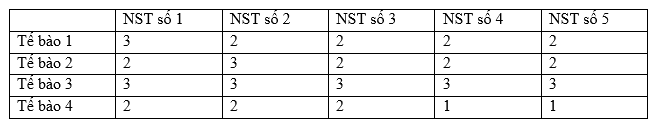Một loài sinh vật lưỡng bội có 5 nhóm gen liên kết, khi quan sát kì giữa của 4 tế bào sinh dưỡng đang thực hiện phân bào người ta đếm được số lượng nhiễm sắc thể (NST) như sau :