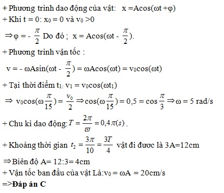 vật đã đi được 12cm. Vận tốc ban đầu của vật là: