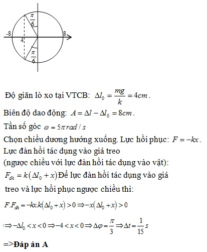 .Thời gian lực đàn hồi tác dụng vào giá treo cùng chiều với lực hồi phục trong một chu kỳ dao động là