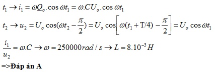 Một mạch dao động lí tưởng gồm một cuộn dây thuần cảm và tụ điện có điện dung 2nF. Trong mạch đang có dao động điện từ tự do với chu kì T. Tại thời điểm t1, cường độ dòng điện trong mạch là 5 mA. Sau một khoảng thời gian Δt = T/4, hiệu điện thế giữa hai bản tụ là 10 V. Độ tự cảm của cuộn dây là