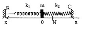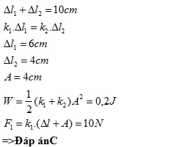 Cho hệ lò xo như hình vẽ: m = 100 g, k1 = 100 N/m; k2 = 150 N/m. Khi ở vị trí cân bằng, tổng độ