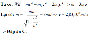 Một hạt tương đối tính có động năng bằng hai lần năng lượng nghỉ. Tốc độ của hạt đó bằng