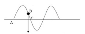 Một sóng truyền trên sợi dây với tần số f = 10Hz. Tại một thời điểm nào đó sợ dây có dạng như hình vẽ. Biết rằng khoảng cách từ vị trí cân bằng của phần tử A đến vị trí cân bằng của phần tử C là 40cm và phần tử tại B đang đi xuống để qua VTCB. Chiều và tốc độ truyền của sóng là