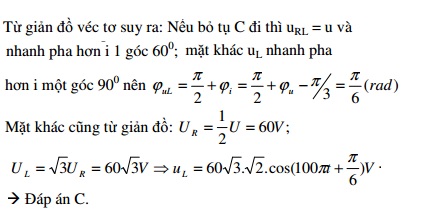 vào hai đầu đoạn mạch RLC mắc nối tiếp thief điện áp hai đầu RL vuông pha với điện áp hai đầu đoạn mạch và điện áp hiệu dụng trên tụ bằng 240V. Nếu nối tắt tụ C thì biểu thức điện áp tức thời hai đầu cuộn dây là