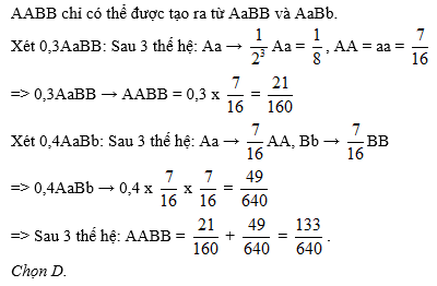 Cấu trúc di truyền của QT như sau: 0,3AaBB:0,4AaBb:0,3aabb . Cho quần thể tự thụ qua ba thế hệ tỷ