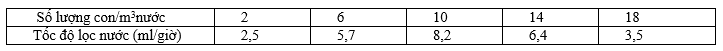 Nghiên cứu khả năng lọc nước của một loài động vật thu được kết quả như sau: