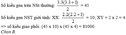 Trong một quần thể, xét 4 gen: gen 1 có 3 alen, gen 2 có 3 alen, hai gen này cùng nằm trên một nhiễm