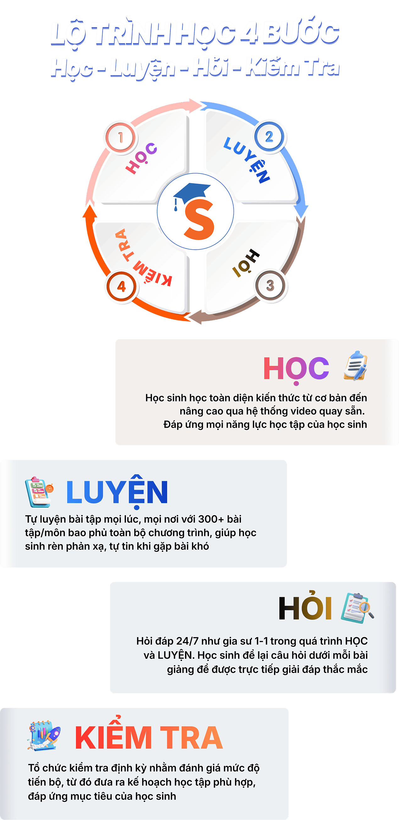 • 4. Khoá học của cô Thuỷ luôn đảm bảo kiến thức trọng tâm SGK, đi kèm các phiếu luyện tập, giúp các con rèn luyện kĩ năng và ôn tập các kiến thức vừa học.