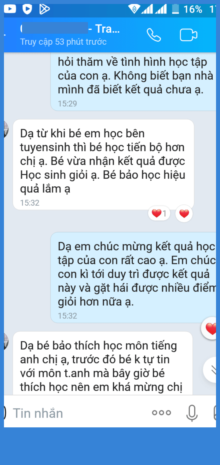 • 3. Kinh nghiệm dạy học sinh yếu kém tiến bộ rõ rệt sau thời gian ngắn, chuyên ôn thi vào lớp 6 cho HS vào các trường Lương Thế Vinh, Nguyễn Tất Thành, Cầu Giấy, Archimedes, Nam Từ Liêm, Thanh Xuân.