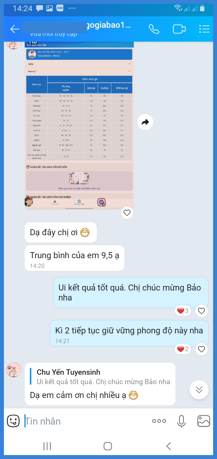 • 2. Cô đã có 14 năm kinh nghiệm dạy học và luyện thi, giúp nhiều học sinh đạt thành tích cao trong học tập như thủ khoa thi đầu vào lớp 10, giải Nhất kì thi Học sinh giỏi thành phố Hà Nội.
