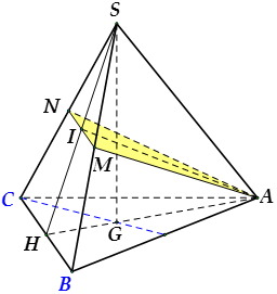 Cho hình chóp tam giác đều \(S.ABC\) có cạnh đáy bằng \(a\sqrt 3 \). Gọi \(M,N\) lần lượt là trung điểm của \(SB,SC\). Biết mặt phẳng \(\left( {AMN} \right)\) vuông góc với mặt phẳng \(\left( {SBC} \right)\). Tính thể tích của khối chóp \(A.BCNM\).