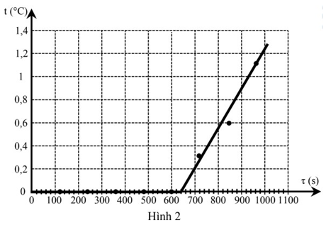 Từ bảng số liệu họ vẽ được đồ thị biểu diễn sự thay đổi nhiệt độ theo thời gian của nước trong bình nhiệt lượng kế như hình 2.