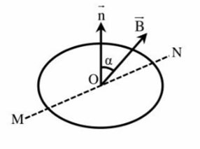 Xét một vòng dây dẫn kín (C), diện tích S được đặt trong từ trường đều cảm ứng từ \(\overrightarrow B \)tạo với véc tơ pháp tuyến \(\overrightarrow n \) của mặt phẳng vòng dây một góc α thì từ thông gửi qua diện tích vòng dây được xác định theo biểu thức: