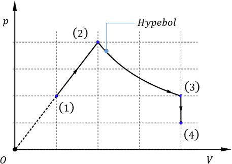 Một lượng khí xác định biến đổi theo các quá trình (1) - (2) - (3) - (4) như hình vẽ. Biết nhiệt độ của chất khí ở trạng thái (1) là \({T_1} = 300K\). Nhiệt độ của chất khí này ở trạng thái (4) là