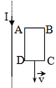 Một khung dây dẫn hình chữ nhật kín ABCD chuyển động song song với đoạn dây dẫn thẳng dài vô hạn mang dòng điện I chạy qua như hình vẽ. Dòng điện cảm ứng trong khung.