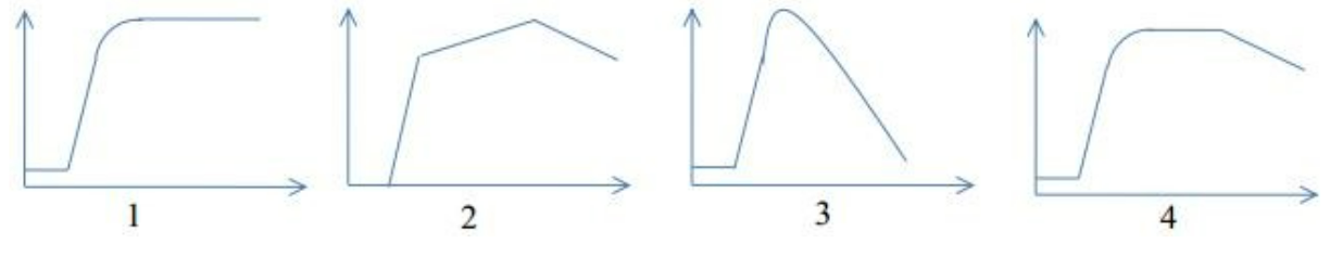 Quan sát các hình sau, hình nào mô tả đúng đường cong sinh trưởng của quần thể vi khuẩn trong điều kiện nuôi cấy không liên tục?