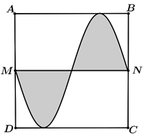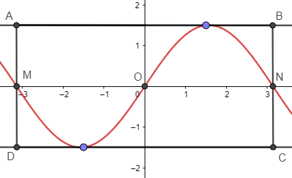 Bác An có mảnh vườn hình chữ nhật \(ABCD\), chiều dài \(AB = 2\pi \left( m \right)\), chiều rộng \(BC = 3\left( m \right)\). Bác muốn trồng hoa trên dải đất (phần tô đậm) được giới hạn bởi đường \(MN\) (với \(M,N\) lần lượt là trung điểm của \(AD,BC\)) và một đường hình sin (tham khảo hình vẽ). Diện tích đất trồng hoa bằng bao nhiên \(m^2\)?