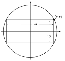 Một kiến trúc sư muốn thiết kế một khung cửa sổ hình chữ nhật lắp vào một ô tròn trên tường có bán kính 4 mét. Kiến trúc sư muốn cửa sổ có kích thước lớn nhất để đón ánh sáng vào căn phòng. Hỏi diện tích lớn nhất của cửa sổ có thể đạt được là bao nhiêu?
