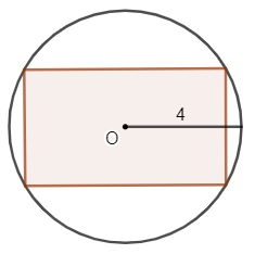 - Bài toán yêu cầu tìm diện tích lớn nhất của hình chữ nhật nội tiếp hình tròn có bán kính bằng 4.