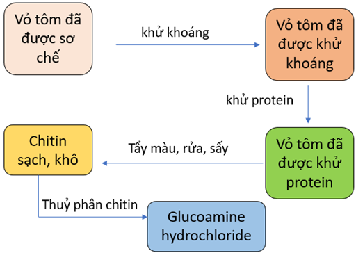 Trong giai đoạn từ chitin để tạo thành glucosamine hydrochloride, nhóm học sinh thực hiện theo 2 bước như sau: