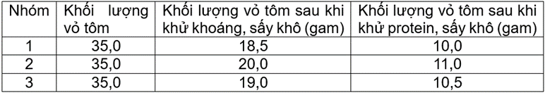 | c) Khối lượng khoáng trung bình trong vỏ tôm là khoảng 15,8 gam. | ||