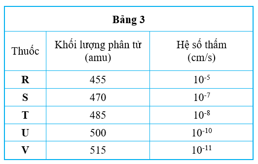 Phát biểu nào sau đây mô tả đúng nhất mối quan hệ giữa khối lượng phân tử và hệ số thấm của thuốc, trong Thí nghiệm 3 ?