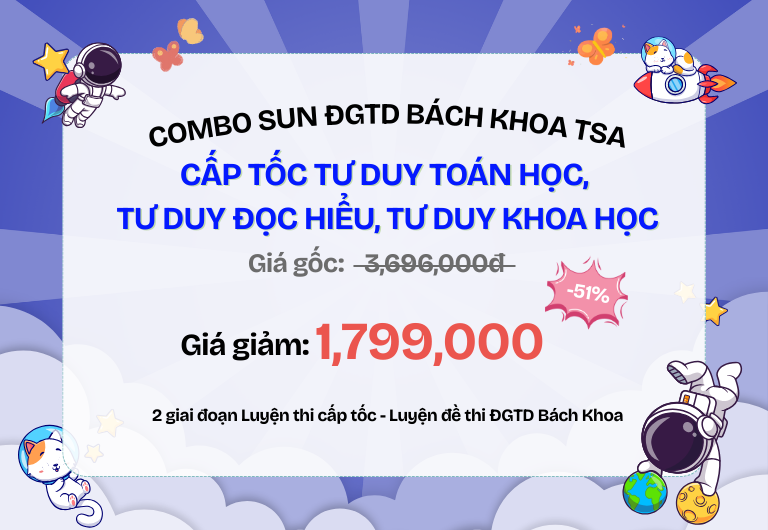 - Hệ thống hóa kiến thức cốt lõi, giúp học sinh nắm chắc các phần trọng tâm thường xuất hiện trong đề thi ĐGTD Bách Khoa TSA phần Tư duy khoa học.