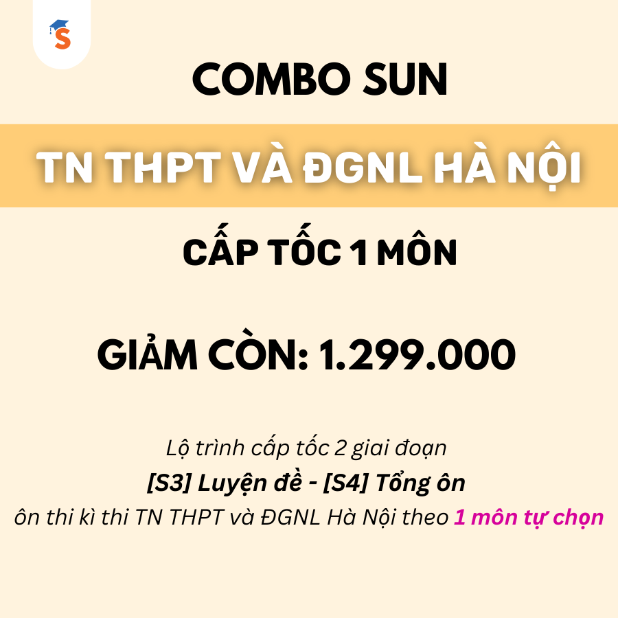 - Combo SUN TN THPT & ĐGNL HÀ NỘI (2K8) - CẤP TỐC 1 MÔN TỰ CHỌN