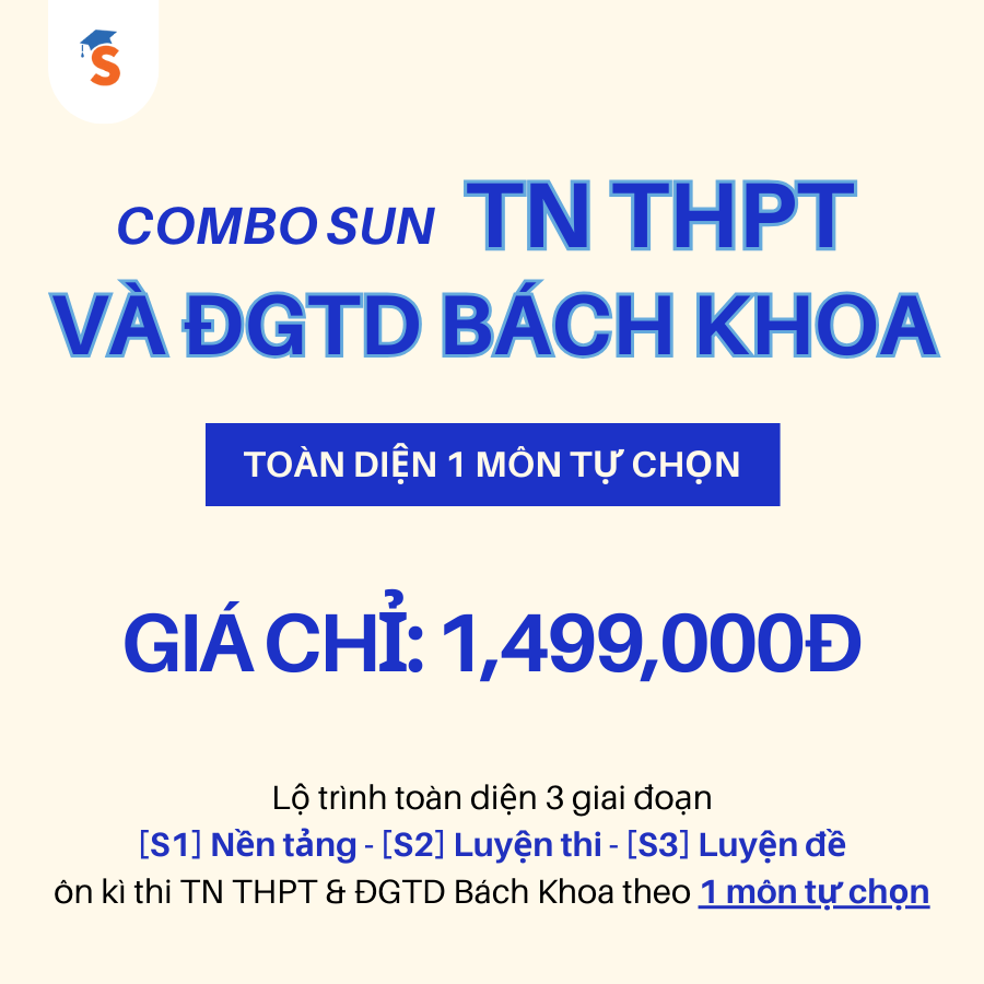 - Combo SUN TN THPT & ĐGTD BK (TSA) (2K8) - TOÀN DIỆN 1 MÔN TỰ CHỌN