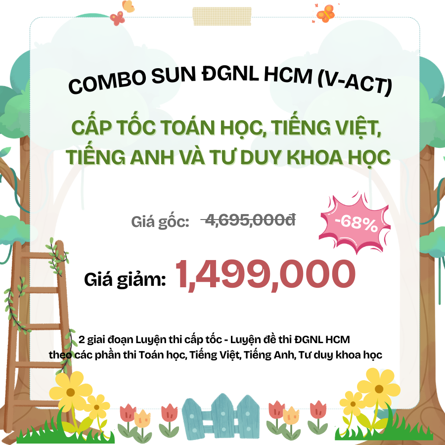 - Combo SUN ĐGNL TP. HCM (V-ACT) - CẤP TỐC TOÁN HỌC, TIẾNG VIỆT, TIẾNG ANH VÀ TƯ DUY KHOA HỌC
