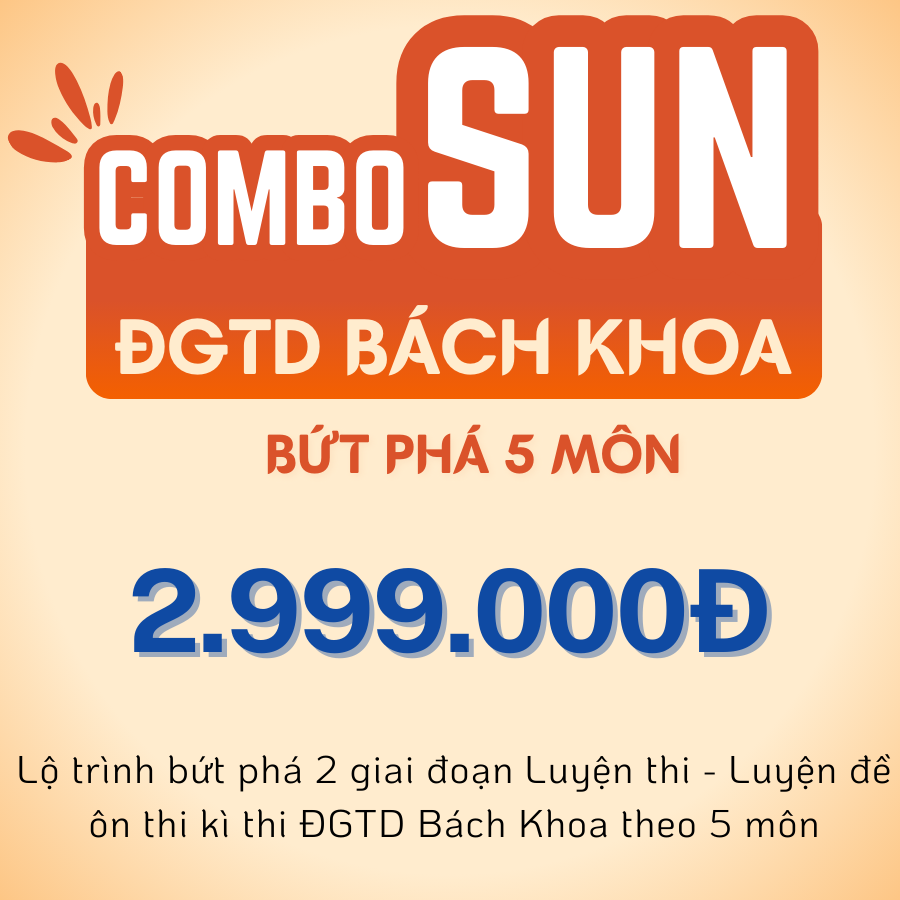 - Combo SUN ĐGTD BÁCH KHOA (TSA) - BỨT PHÁ 5 MÔN (TOÁN, ĐỌC HIỂU, LÍ, HOÁ, SINH)