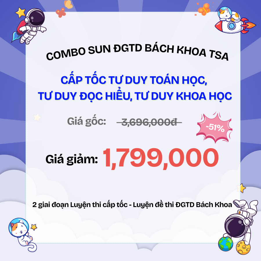 - Combo SUN ĐGTD BÁCH KHOA (TSA) - CẤP TỐC TƯ DUY TOÁN HỌC, TƯ DUY ĐỌC HIỂU, TƯ DUY KHOA HỌC