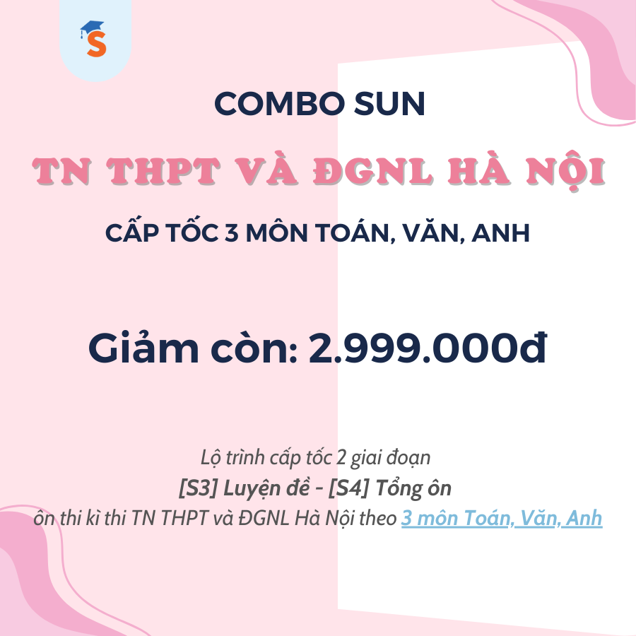 - Combo SUN TN THPT & ĐGNL HÀ NỘI (2K8) - CẤP TỐC 3 MÔN (TOÁN, VĂN, ANH)