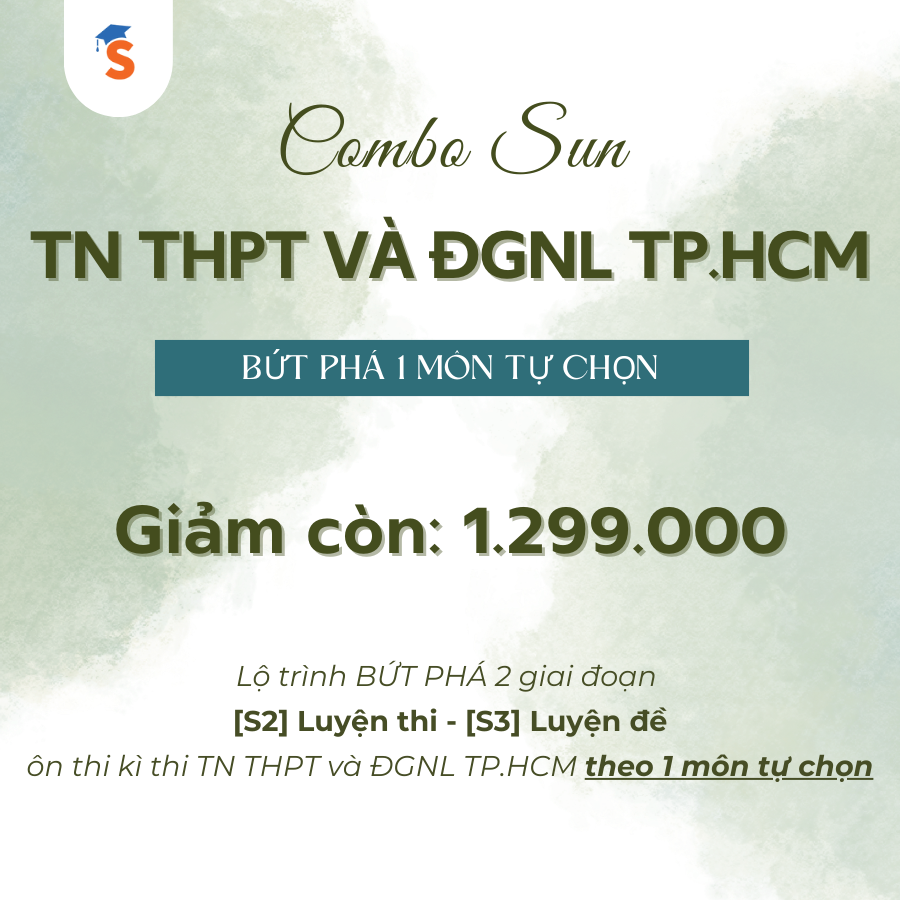 - Combo SUN TN THPT & ĐGNL TP. HCM (2k8) - BỨT PHÁ 1 MÔN TỰ CHỌN