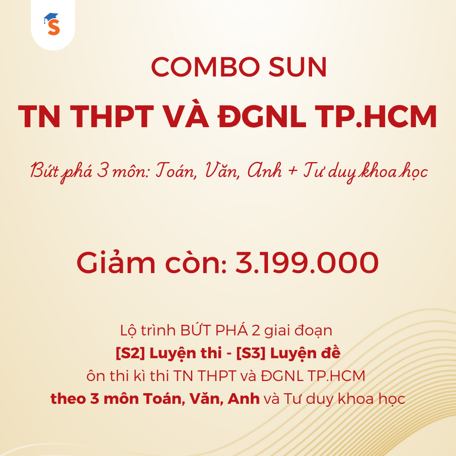 - Combo SUN TN THPT & ĐGNL TP. HCM (2k8) - BỨT PHÁ 3 MÔN (TOÁN, VĂN, ANH) + TƯ DUY KHOA HỌC