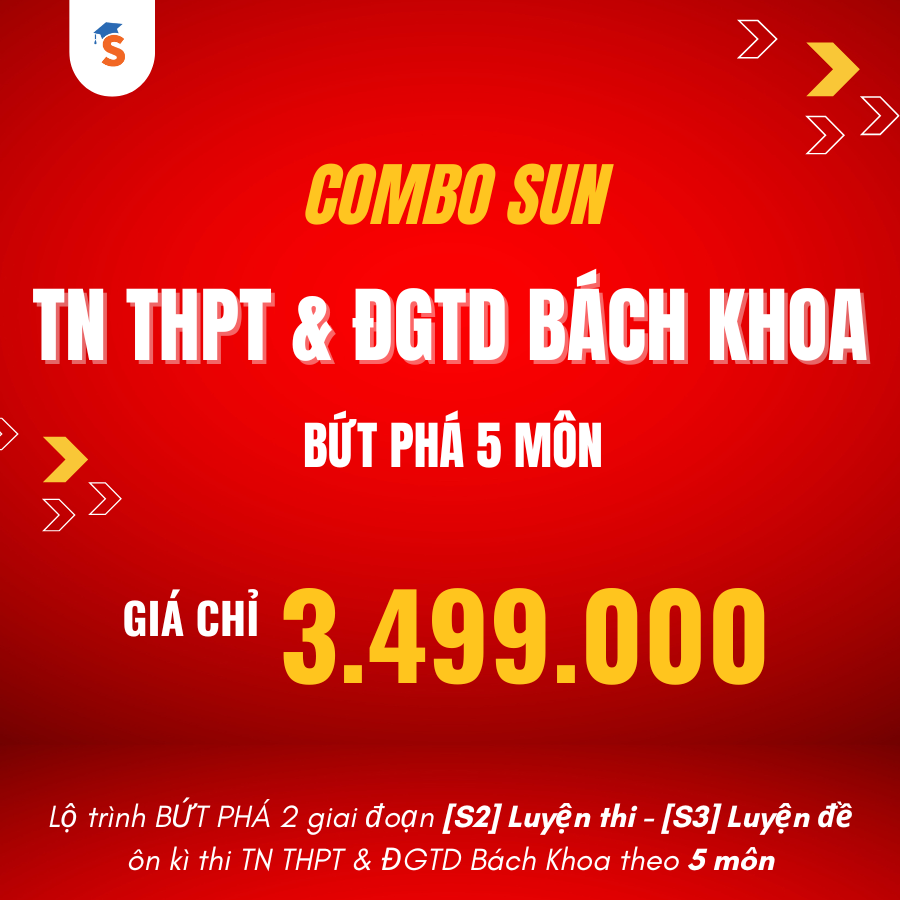 - Combo SUN TN THPT & ĐGTD BK (TSA) (2K8) - BỨT PHÁ 5 MÔN (TOÁN, ĐỌC HIỂU, LÍ, HOÁ, SINH)