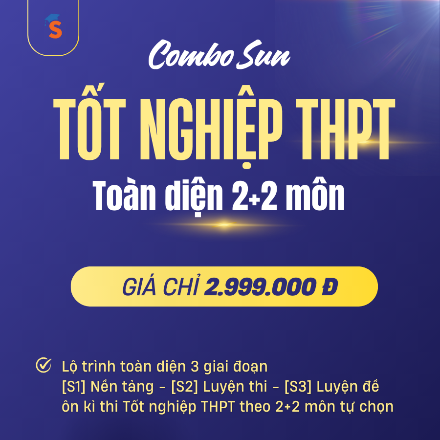 - Combo SUN TỐT NGHIỆP THPT (2K8) - TOÀN DIỆN 2+2 MÔN (TOÁN, VĂN VÀ 2 MÔN TỰ CHỌN)
