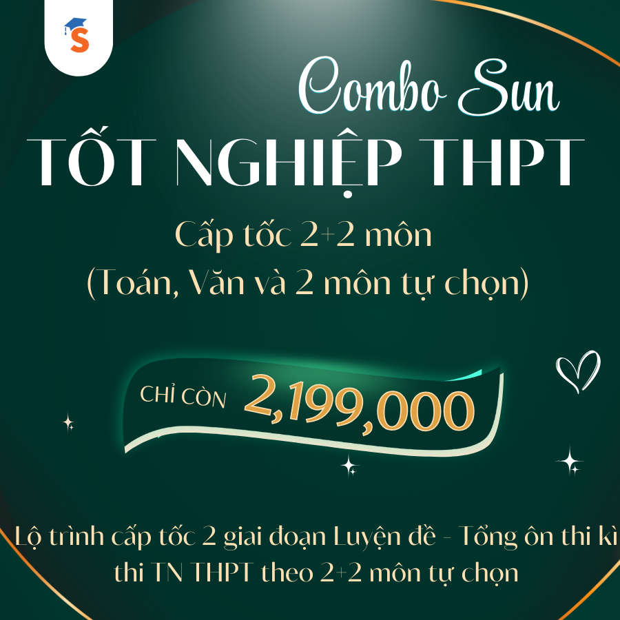 - Combo SUN TỐT NGHIỆP THPT (2K8) - CẤP TỐC 2+2 MÔN (TOÁN, VĂN VÀ 2 MÔN TỰ CHỌN)