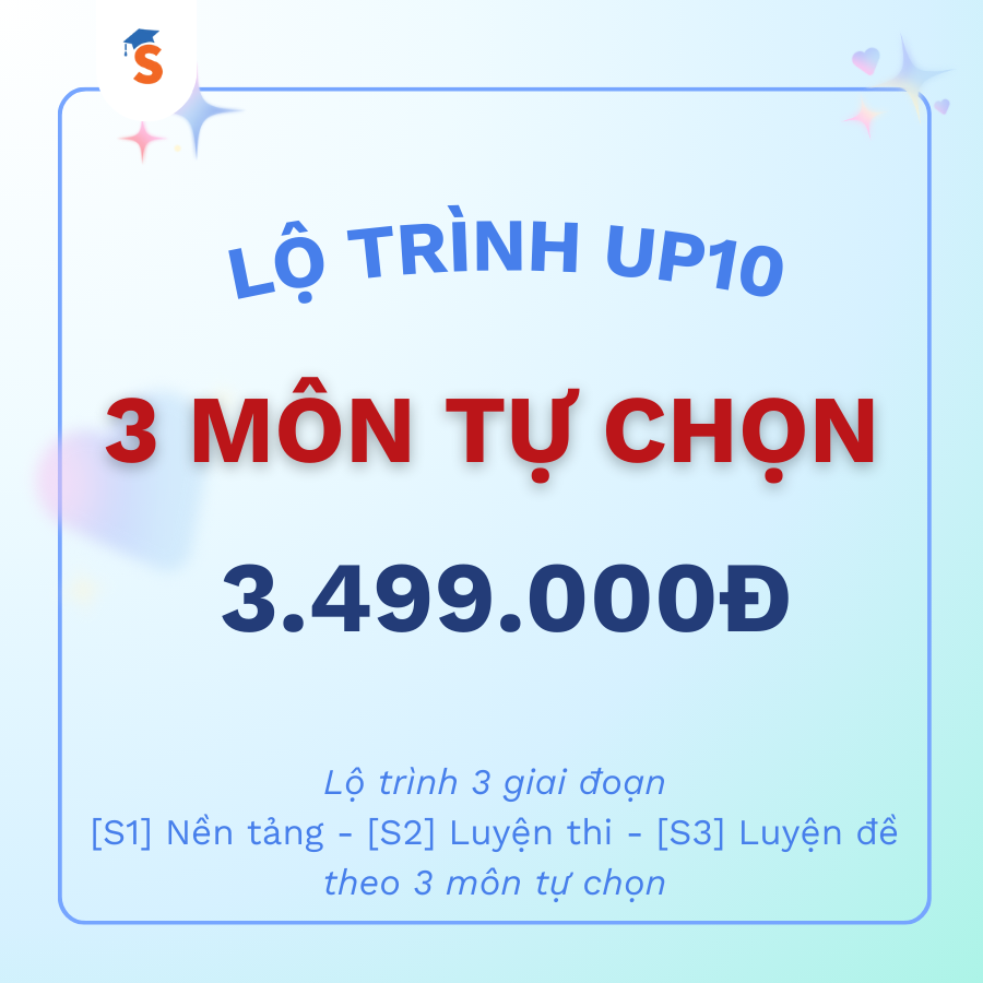 - Combo LỘ TRÌNH UP10 (3 MÔN) - ÔN THI VÀO 10 THEO 3 MÔN TỰ CHỌN